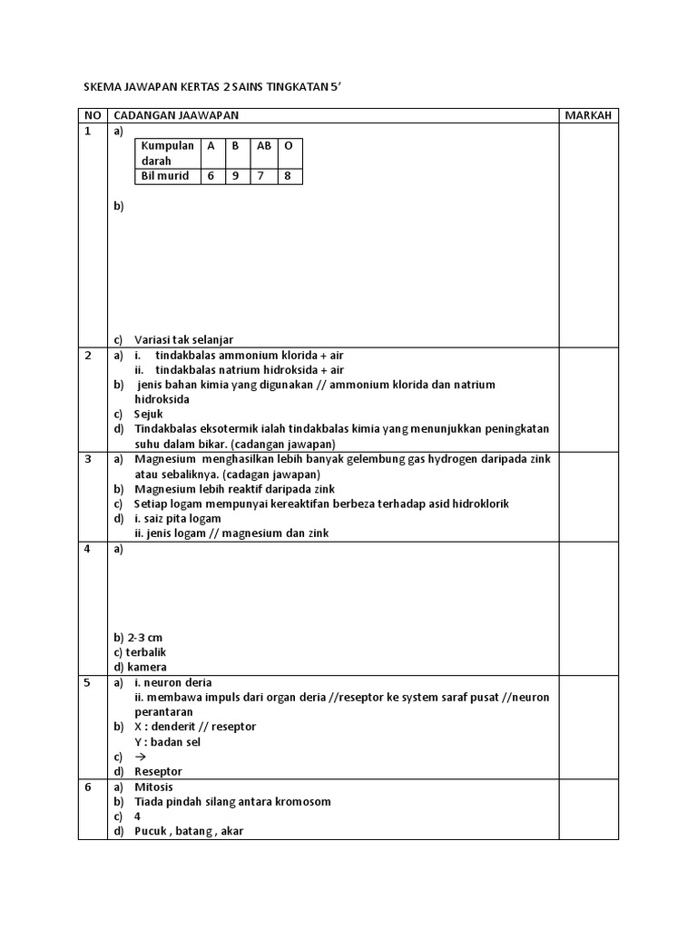 Skema Jawapan Kertas 2 Sains Tingkatan 5 Pdf